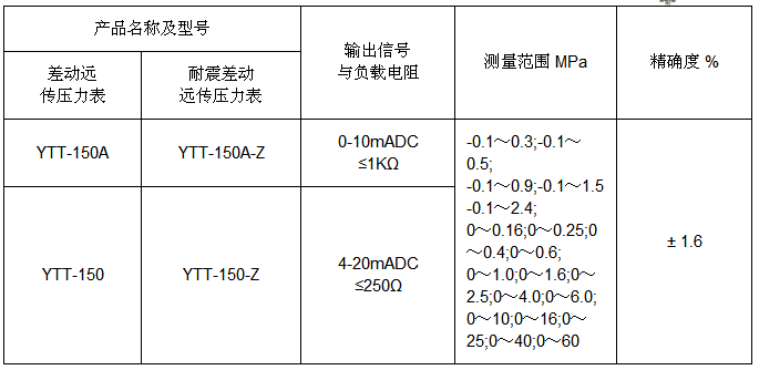 YTT-150 YTT-150A差動遠傳壓力表