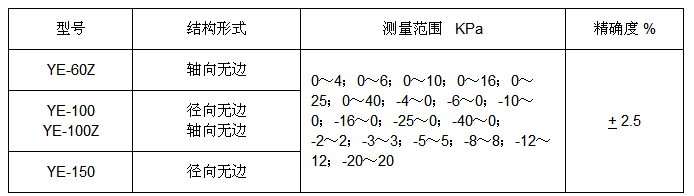 YE-60 YE-100 YE-150 膜盒壓力表